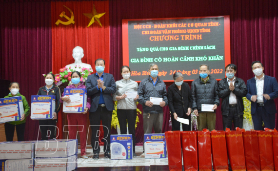 Chiều ngày 24/3, Hội Cựu chiến binh, Đoàn Thanh niên Khối các cơ quan tỉnh tặng quà các gia đình chính sách, gia đình có hoàn cảnh khó khăn tại xã Hòa Bình (Vũ Thư).
