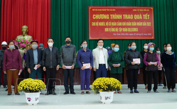 Chiều ngày 27/1, Hiệp hội Doanh nghiệp tỉnh và nhà tài trợ - Tập đoàn Geleximco đi trao quà tết cho người nghèo tại huyện Tiền Hải.