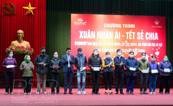 Nhân dịp tết Nguyên đán Nhâm Dần 2022, Hội Doanh nghiệp huyện Đông Hưng huy động hơn 1.800 suất quà tết tặng hộ cận nghèo, hộ có hoàn cảnh khó khăn trên địa bàn huyện.