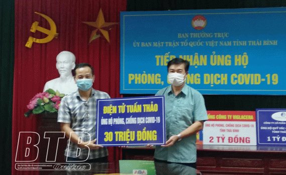 Chiều ngày 28/7, Ủy ban MTTQ Việt Nam tỉnh tổ chức tiếp nhận 30 triệu đồng ủng hộ phòng, chống dịch Covid-19 từ Công ty Điện tử Tuấn Thảo (Thành phố Thái Bình).