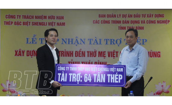 Chiều ngày 5/4, Ban Quản lý dự án Đầu tư xây dựng các công trình dân dụng và công nghiệp tỉnh tổ chức tiếp nhận 64 tấn thép do Công ty TNHH Thép đặc biệt Shengli Việt Nam tài trợ xây dựng công trình Đền...