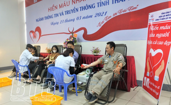 Hưởng ứng ngày toàn dân hiến máu tình nguyện (7/4/2000-7/4/2021), sáng ngày 23/3, Đoàn Thanh niên ngành Thông tin và Truyền thông phối hợp với Công ty Điện lực Thái Bình, Hội Chữ thập đỏ tỉnh, Khoa Huyết...