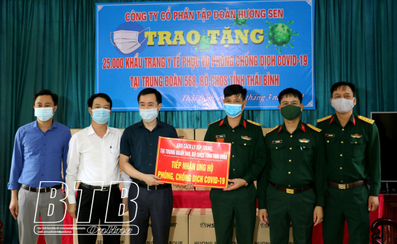Chiều ngày 15/3, Trung đoàn 568, Bộ CHQS tỉnh tổ chức tiếp nhận 25.000 khẩu trang y tế phục vụ công tác phòng, chống dịch Covid - 19 từ Công ty Cổ phần Tập đoàn Hương Sen.