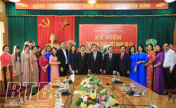 Đồng chí Bí thư Tỉnh ủy thăm, chúc mừng cán bộ, giáo viên Trường Chính trị tỉnh và Trường THCS Hợp Hưng (Đông Hưng)
