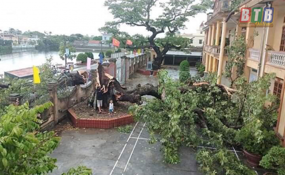 Do ảnh hưởng của hoàn lưu bão số 2 với gió giật mạnh đã làm cho cây gạo di sản Việt Nam gần 400 năm tuổi tại xã Thượng Hiền (Kiến Xương) bị gẫy làm đôi.