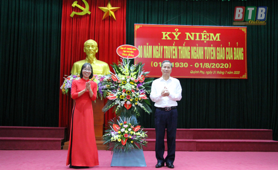 Chiều ngày 31/7, Ban Tuyên giáo Huyện ủy Quỳnh Phụ tổ chức lễ kỷ niệm 90 năm ngày truyền thống ngành Tuyên giáo của Đảng (1/8/1930 – 1/8/2020).