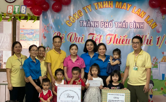 Nhân ngày Quốc tế thiếu nhi, chiều ngày 1/6, Công đoàn Viên chức tỉnh tổ chức thăm, tặng quà trẻ em đang sinh sống, học tập tại Trung tâm Công tác xã hội và Bảo trợ xã hội, Làng trẻ em SOS Thái Bình.