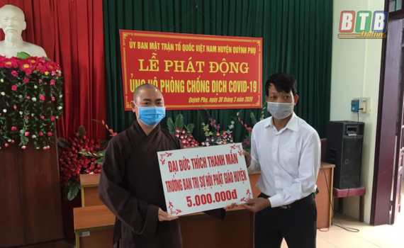 Hưởng ứng lời kêu gọi “Toàn dân tham gia ủng hộ phòng, chống dịch Covid - 19” của Ủy ban MTTQ tỉnh, tại lễ phát động và tiếp nhận ủng hộ công tác phòng, chống dịch Covid - 19 của tỉnh, Ban Trị sự Giáo hội...