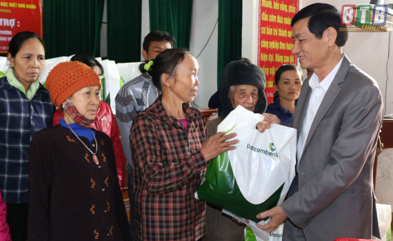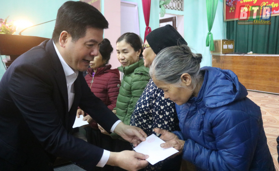 Đồng chí Bí thư Tỉnh ủy, Chủ tịch HĐND tỉnh trao quà cho hộ nghèo, hộ cận nghèo tại huyện Tiền Hải