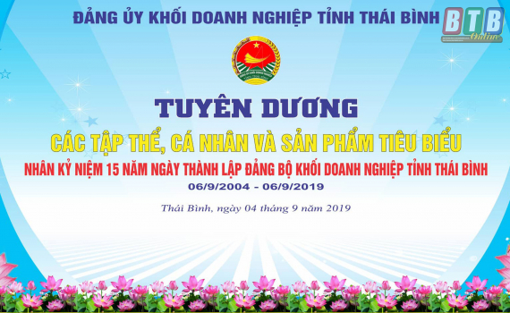Vào hồi 15 giờ ngày 04/9/2019, tại Hội trường Khách sạn Dầu khí Thái Bình sẽ diễn ra hội nghị tuyên dương các tập thể, cá nhân và sản phẩm tiêu biểu nhân kỷ niệm 15 năm ngày thành lập Đảng bộ khối Doanh...