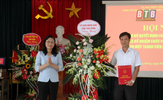 Bổ nhiệm chức vụ Chủ tịch Công ty TNHH MTV Khai thác công trình thủy lợi Bắc Thái Bình