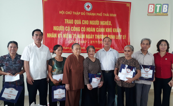 Nhân kỷ niệm 72 năm ngày Thương binh - Liệt sỹ (27/7), sáng ngày 17/7, Hội Chữ thập đỏ Thành phố Thái Bình tổ chức trao quà cho các gia đình chính sách, người có công với cách mạng có hoàn cảnh khó khăn...