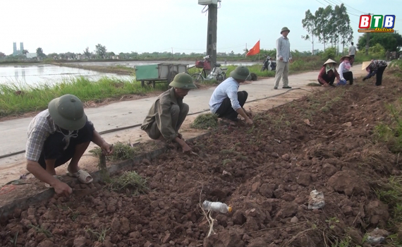 Thực hiện kế hoạch của UBND huyện Vũ Thư về việc trồng hoa, cây xanh, vệ sinh môi trường, xã Vũ Đoài đã huy động lực lượng, phương tiện ra quân lao động trồng tuyến đường hoa dài hơn 3km.