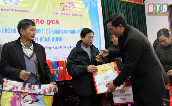 Chiều ngày 4/1, tại Trung tâm hội nghị huyện Đông Hưng, Hội Chữ thập đỏ huyện tổ chức trao quà cho các hộ có hoàn cảnh khó khăn trên địa bàn huyện.