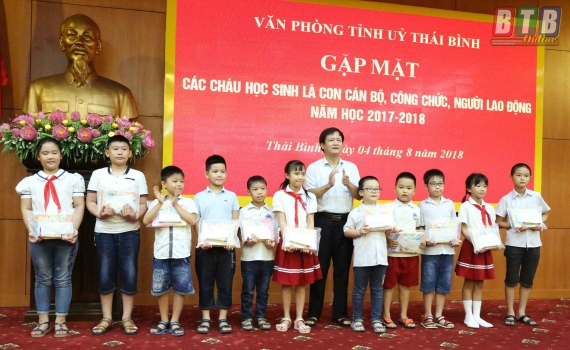 Sáng ngày 4/8, Ban Biên tập và Công đoàn cơ quan Báo Thái Bình tổ chức gặp mặt, khen thưởng các cháu học sinh là con cán bộ, viên chức cơ quan Báo Thái Bình nhân dịp đầu năm học mới 2018 - 2019.