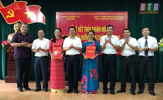 Chiều ngày 10/8, Trường Cao đẳng Y tế Thái Bình và Công ty TNHH Bệnh viện Đa khoa chất lượng cao tỉnh Thái Bình tổ chức lễ ký kết thỏa thuận hợp tác đào tạo điều dưỡng viên chất lượng cao.
