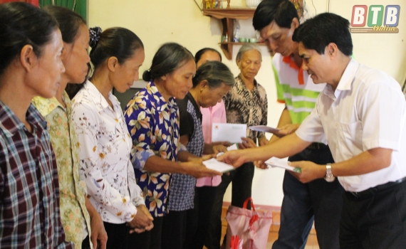 Tặng quà các hộ dân bị thiệt hại do lốc xoáy