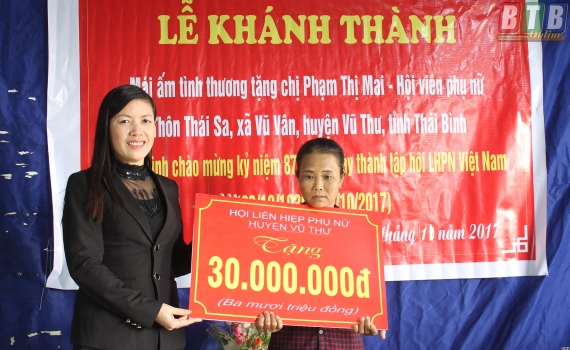 Sáng ngày 2/11, tại thôn Thái Sa, xã Vũ Vân, Hội Liên hiệp Phụ nữ (LHPN) huyện Vũ Thư tổ chức lễ khánh thành mái ấm tình thương tặng chị Phạm Thị Mai, nữ giáo dân làng chài Thủy Cơ.