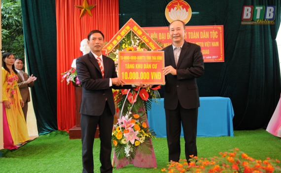 Đồng chí Phạm Văn Sinh, Bí thư Tỉnh ủy dự và chúc mừng ngày hội đại đoàn kết toàn dân 2017 thôn An Bái, xã Quỳnh Giao (Quỳnh Phụ) tổ chức sáng ngày 7/11.