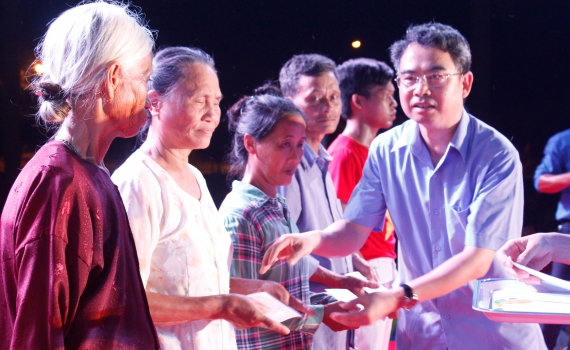 15 suất quà được cán bộ, nhân viên Văn phòng UBND tỉnh trao tặng cho các đối tượng chính sách, gia đình có công với cách mạng trên địa bàn xã Tân Hòa, huyện Vũ Thư sáng ngày 22/7.