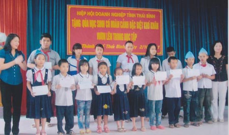 Được sự tài trợ của Hiệp hội Doanh nghiệp tỉnh, Hội Khuyến học Thành phố đã xuống 5 phường, xã: Hoàng Diệu, Phú Xuân, Tiền Phong, Vũ Phúc, Kỳ Bá tổ chức trao học bổng cho 100 em học sinh có hoàn cảnh...