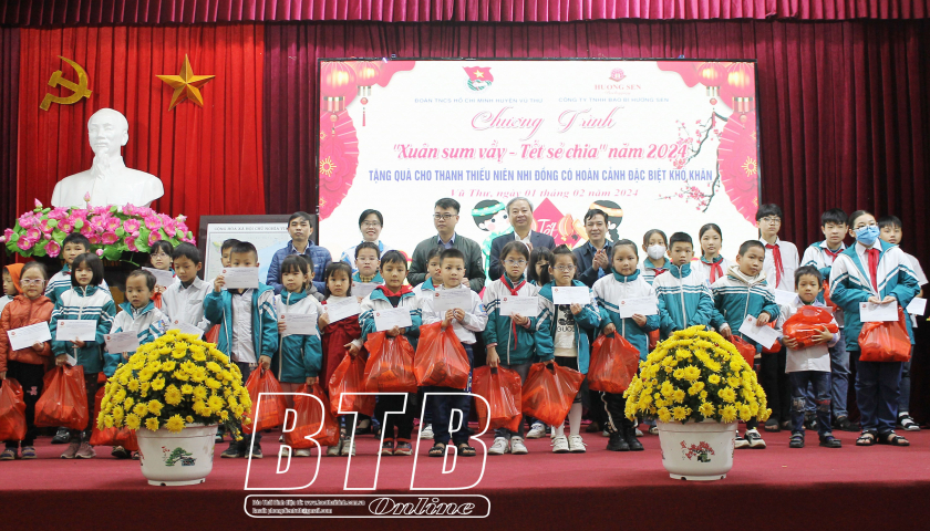 Sáng ngày 1/2, Huyện đoàn Vũ Thư tổ chức chương trình “Xuân sum vầy - Tết chia sẻ” và tặng quà cho thiếu niên, nhi đồng có hoàn cảnh đặc biệt khó khăn.