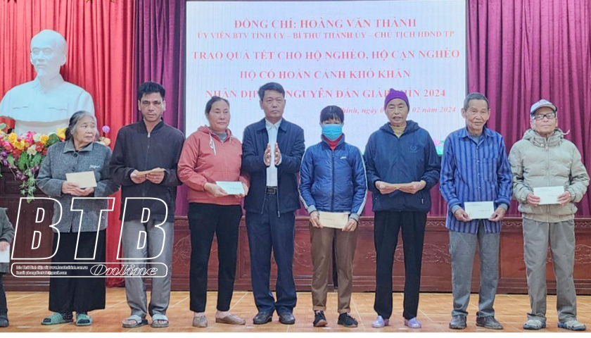 Nhân dịp tết Nguyên đán Giáp Thìn 2024, chiều ngày 1/2, đồng chí Hoàng Văn Thành, Ủy viên Ban Thường vụ Tỉnh ủy, Bí thư Thành ủy, Chủ tịch HĐND thành phố đã đến thăm, tặng quà tết cho hộ nghèo, hộ cận...