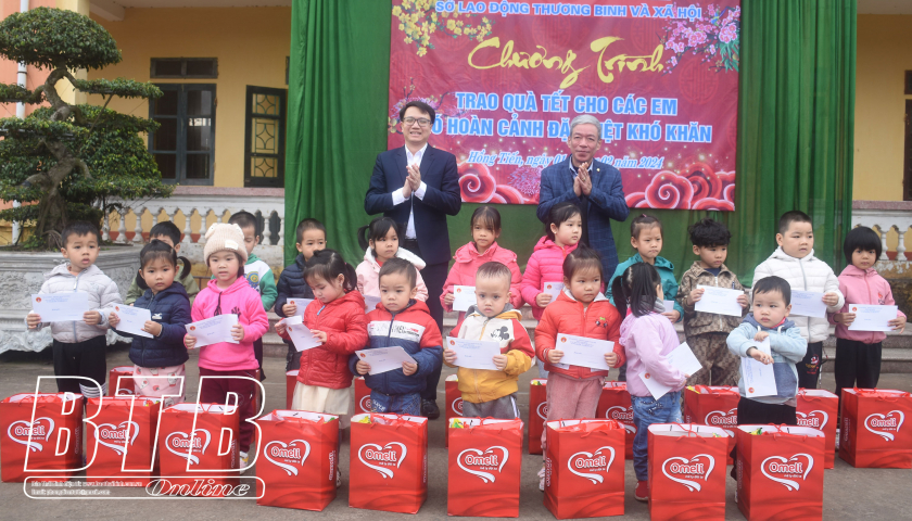Sáng ngày 1/2, Sở Lao động - Thương binh và Xã hội tổ chức trao quà tết cho trẻ em làng chài thôn Cao Bình, xã Hồng Tiến (Kiến Xương).