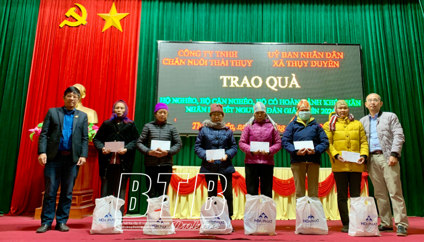 Nhân dịp tết Nguyên đán Giáp Thìn 2024, từ ngày 22 - 24/1, Công ty TNHH Chăn nuôi Thái Thụy, xã Thụy Duyên (Thái Thụy) thuộc Tập đoàn Hòa Phát đã trao 331 suất quà cho hộ nghèo, hộ cận nghèo, người có...