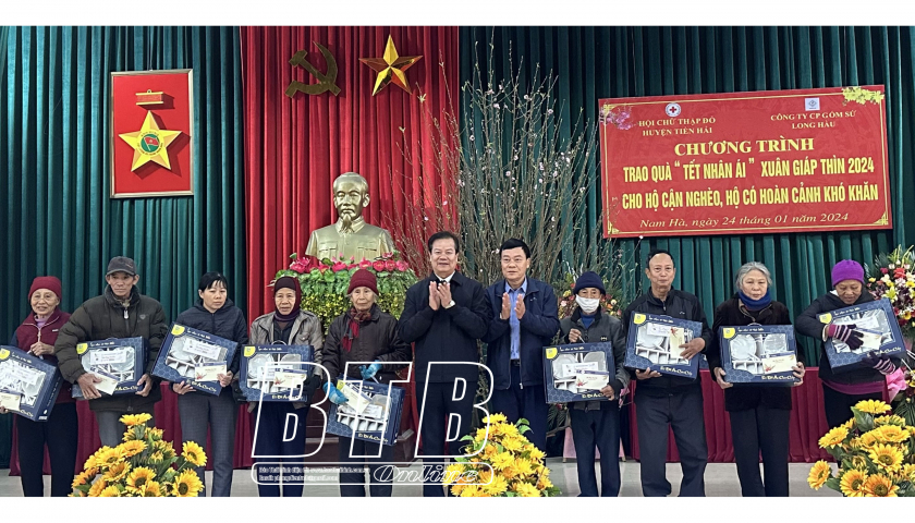Sáng ngày 24/1, Hội Chữ thập đỏ huyện Tiền Hải phối hợp với Công ty Cổ phần Gốm sứ Long Hầu tổ chức trao quà tết cho 120 hộ cận nghèo, hộ có hoàn cảnh khó khăn tại các xã: Nam Hà, Đông Cơ, Đông Lâm và...