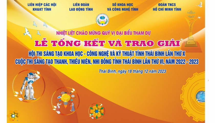 Sáng ngày 18/12, Liên hiệp các Hội Khoa học và Kỹ thuật tỉnh phối hợp với Liên đoàn Lao động tỉnh, Sở Khoa học và Công nghệ, Sở Giáo dục và Đào tạo, Tỉnh đoàn tổ chức lễ tổng kết và trao giải hội thi sáng tạo khoa học, công nghệ và kỹ thuật tỉnh lần thứ X, cuộc thi sáng tạo thanh thiếu niên, nhi đồng tỉnh lần thứ VI, năm 2022 - 2023.