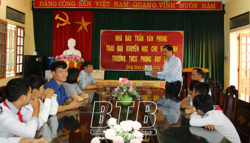 Chiều ngày 13/10, nhà báo Trần Văn Phong, Trưởng Văn phòng đại diện Báo Sài Gòn Giải Phóng tại khu vực miền Đông Nam Bộ và anh trai đã đến thăm, trao quà cho học sinh nghèo vượt khó của Trường THCS Phong Huy Lĩnh, xã Đông Quan (Đông Hưng).