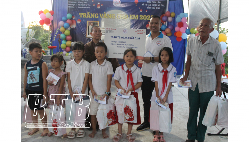 Nhân dịp tết Trung thu năm 2023, tối ngày 23/9, tại chùa Phúc Lâm, xã Tự Tân (Vũ Thư), nhóm Kết nối trái tim (Hà Nội) phối hợp với nhà chùa tổ chức chương trình “vầng trăng cho em” dành cho trẻ em có hoàn...