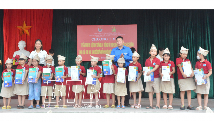 Sáng ngày 25/9, Đoàn Thanh niên - Hội đồng Đội thành phố và Đoàn Thanh niên Công an thành phố tặng quà cho học sinh có hoàn cảnh khó khăn nhân dịp tết Trung thu.