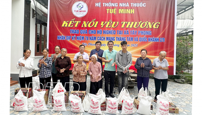 Sáng ngày 25/8, hệ thống nhà thuốc Tuệ Minh phối hợp với xã Tây Phong (Tiền Hải) tổ chức chương trình “Kết nối yêu thương“ trao 32 suất quà cho hộ nghèo trên địa bàn xã.