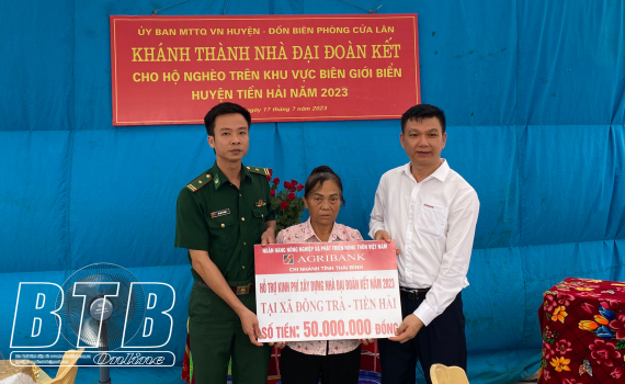 Sáng ngày 17/7, Đồn Biên phòng Cửa Lân phối hợp với Ủy ban MTTQ huyện Tiền Hải, Ngân hàng Nông nghiệp và Phát triển nông thôn chi nhánh tỉnh Thái Bình tổ chức khánh thành nhà tình nghĩa cho bà Đỗ Thị...