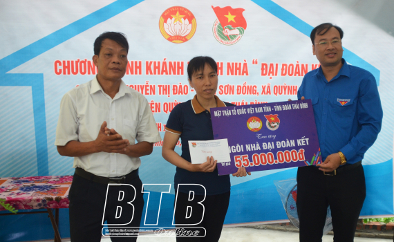 Sáng ngày 9/6, Huyện đoàn Quỳnh Phụ phối hợp Ủy ban MTTQ huyện tổ chức khánh thành nhà đại đoàn kết cho bà Nguyễn Thị Đào, thôn Sơn Đồng, xã Quỳnh Giao (Quỳnh Phụ).