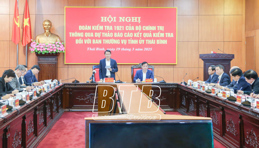 Chiều ngày 19/3, Thường trực Tỉnh ủy Thái Bình tổ chức Hội nghị Ban Thường vụ Tỉnh ủy để Đoàn kiểm tra số 1921 của Bộ Chính trị thông qua dự thảo báo cáo...