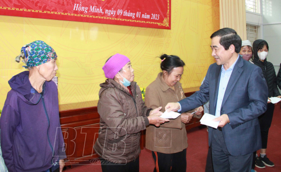 Đồng chí Trần Quốc Vượng trao quà tết cho các hộ gia đình có hoàn cảnh đặc biệt khó khăn huyện Tiền Hải
