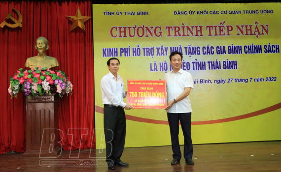 Đảng ủy Khối các cơ quan Trung ương: Trao kinh phí hỗ trợ xây nhà tặng các gia đình chính sách