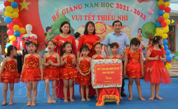 Đồng chí Nguyễn Tiến Thành, Phó Bí thư thường trực Tỉnh ủy, Chủ tịch HĐND tỉnh thăm, tặng quà nhân ngày Quốc tế thiếu nhi 1/6