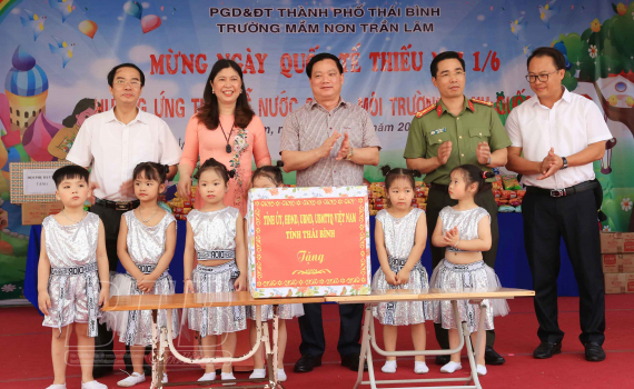 Các đồng chí lãnh đạo tỉnh thăm, tặng quà các cháu thiếu nhi nhân ngày Quốc tế thiếu nhi