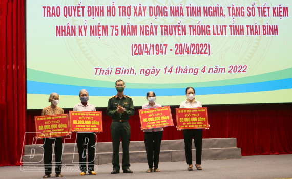Chiều ngày 14/4, Bộ CHQS tỉnh tổ chức hội nghị trao quyết định hỗ trợ xây dựng nhà tình nghĩa và tặng sổ tiết kiệm cho các đối tượng chính sách.