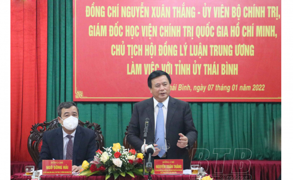 Đồng chí Nguyễn Xuân Thắng, Ủy viên Bộ Chính trị, Giám đốc Học viện Chính trị quốc gia Hồ Chí Minh, Chủ tịch Hội đồng Lý luận Trung ương làm việc với Tỉnh ủy Thái Bình