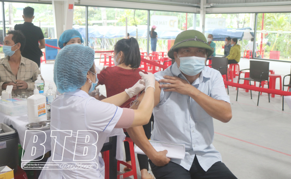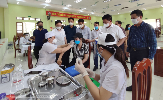 Đồng chí Nguyễn Khắc Thận, Phó Bí thư Tỉnh ủy, Chủ tịch UBND tỉnh kiểm tra, chỉ đạo công tác tiêm vắc-xin phòng Covid-19 tại thành phố Thái Bình