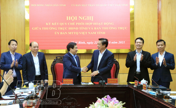 Chiều ngày 22/10, Thường trực HĐND tỉnh và Ban Thường trực Ủy ban MTTQ tỉnh tổ chức hội nghị ký kết quy chế phối hợp hoạt động. Các đồng chí: Nguyễn Tiến...