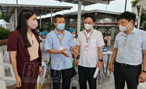 Đồng chí Trần Thị Bích Hằng, Phó Chủ tịch UBND tỉnh kiểm tra, chỉ đạo công tác tiêm vắc-xin phòng Covid-19 tại doanh nghiệp