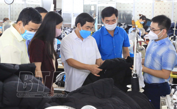 Đồng chí Phó Bí thư thường trực Tỉnh ủy, Chủ tịch HĐND tỉnh kiểm tra, động viên doanh nghiệp và người lao động tại Công ty TNHH May Bình Minh-ATC