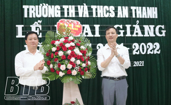 Đồng chí Nguyễn Khắc Thận, Phó Bí thư Tỉnh ủy, Chủ tịch UBND tỉnh dự khai giảng năm học mới tại Trường Tiểu học và THCS An Thanh