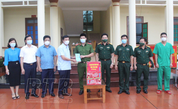 Đồng chí Nguyễn Văn Giang, Trưởng ban Dân vận Tỉnh ủy, Chủ tịch Ủy ban MTTQ tỉnh thăm, tặng quà chốt kiểm soát dịch Covid-19 và khu cách ly tập trung huyện Hưng Hà
